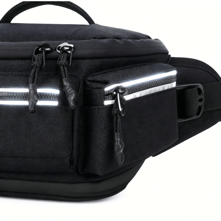 Smart zipper pulls that shine under light, giving extra visibility on evening rides. It’s a small detail that adds peace of mind without changing the bag’s clean, low-profile style.