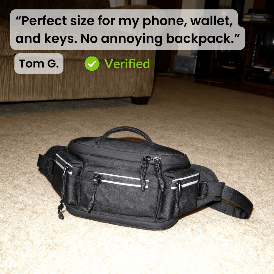 “Perfect size for my phone, wallet, and keys. No annoying backpack.”